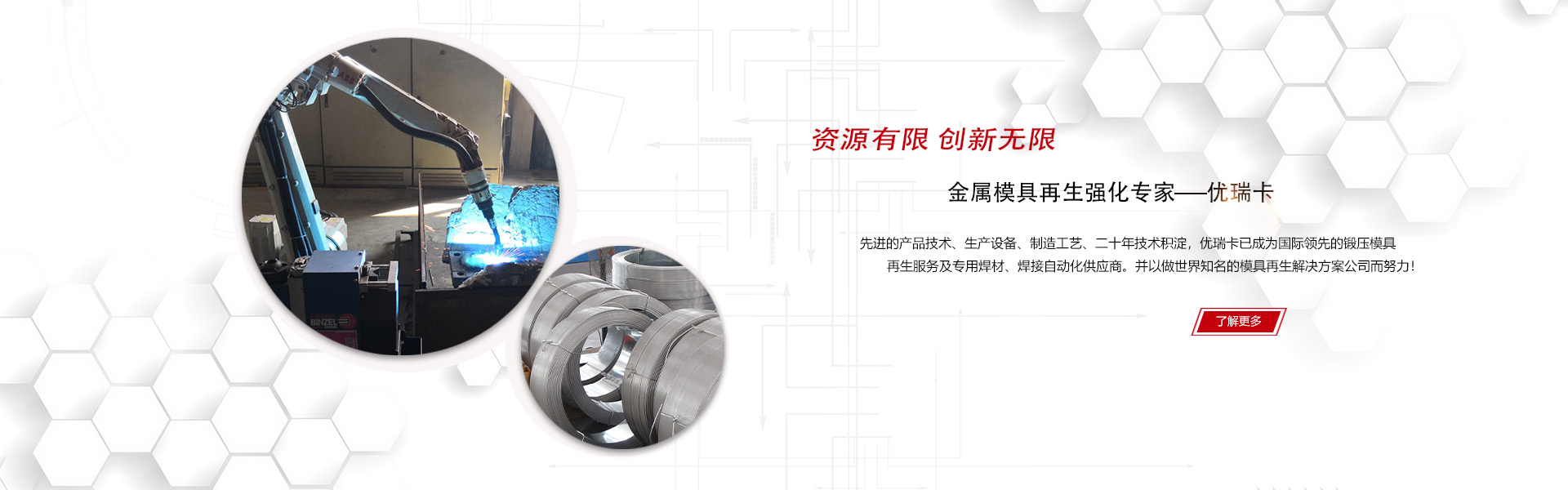 優(yōu)瑞卡是國內(nèi)知名的鍛造模具再生服務及專用焊材、模具焊接系統(tǒng)供應商,我們吸收引用美國、德國、日本等國的先進模具焊修經(jīng)驗,結(jié)合國內(nèi)企業(yè)情況,不斷創(chuàng)新并研發(fā)了更加有效、更加成熟、更易操作的模具再生技術(shù),為廣大企業(yè)在鍛造、沖壓、壓鑄、塑料模具及機械部件維修方面提供優(yōu)質(zhì)的焊接材料、自動化焊接系統(tǒng)、模具加工用刀具和完善的再生修復服務。優(yōu)瑞卡正逐漸成為國內(nèi)外鍛造與沖壓企業(yè)創(chuàng)造更大利潤、提升核心競爭力不可或缺的重要推動力!
